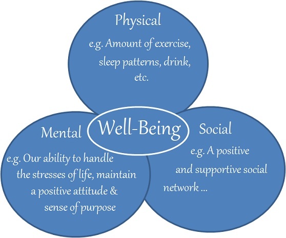 Well being therefore touches on aspects of the body, mind and spirit.